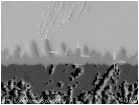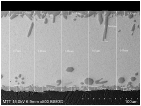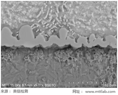 After cutting, inlaying, grinding, polishing, and micro-etching the sample, platinum is plated on the surface. Then, according to the standard operating procedure, the sample is placed in the sample chamber of the scanning electron microscope. The test position required by the customer is magnified for observation and measurement.